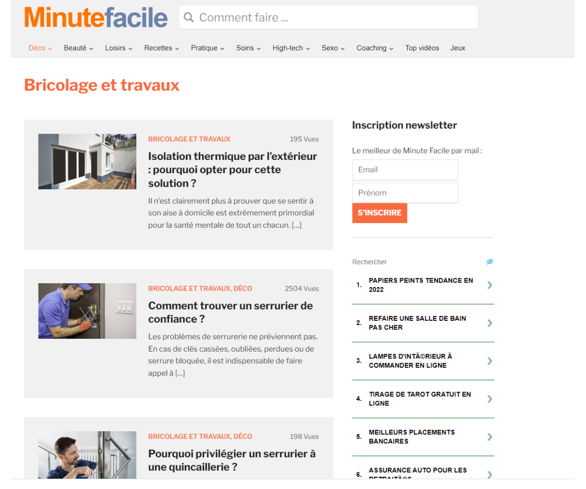 Minute Facile propose les meilleures idées en termes de bricolage : peinture, électricité, jardinage, etc. Les experts du site vous accompagneront pas à pas afin d’apprendre à bricoler comme il se doit.