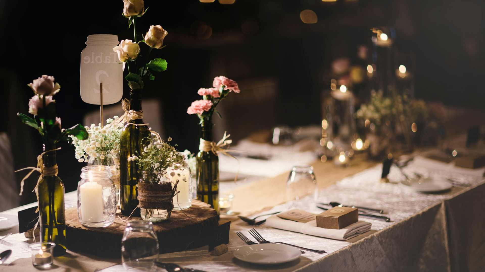 Les couleurs doivent être en harmonie avec votre thème et votre tenue. Vous pouvez choisir deux ou trois tons principaux et les décliner dans toute votre décoration : sur les tables, sur les murs, dans les bouquets de fleurs…